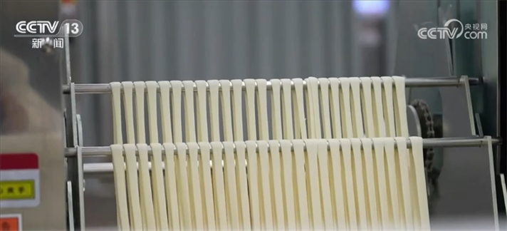 河南食品加工企業(yè)技術(shù)人員 劉錦濤:這款產(chǎn)品就是我們剛剛新開(kāi)發(fā)出來(lái)的“手延面”,它在生產(chǎn)中可以拉到兩米長(zhǎng)還不斷裂,最細(xì)的話可以做到0.5毫米,可以說(shuō)細(xì)如發(fā)絲。