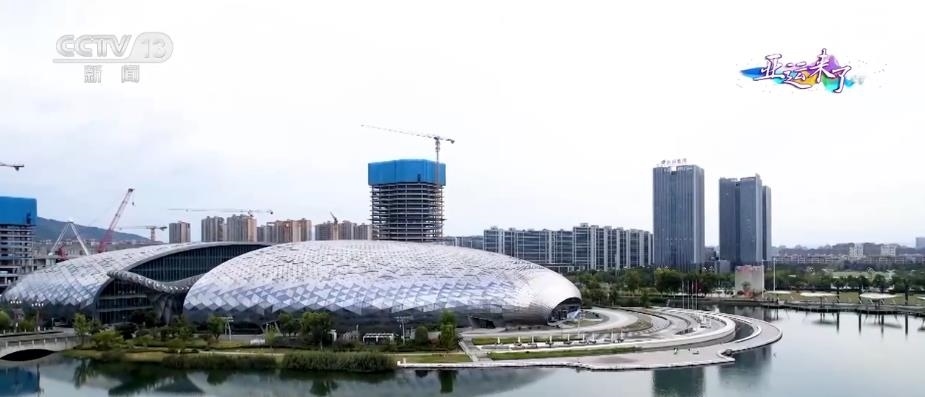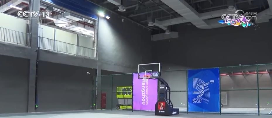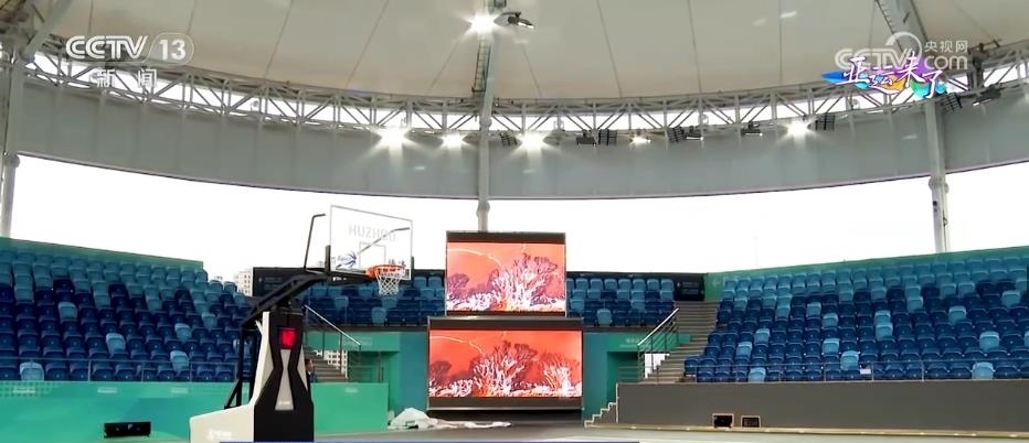 總臺央視記者 任梅梅:這里就是位于浙江德清的此次杭州亞運會三人制籃球項目的比賽場館。整個場館是鋼結(jié)構(gòu)的建筑,正式比賽場地位于整個建筑的屋頂。這里可容納1009名觀眾現(xiàn)場觀賽,在場地的中央吊頂處,還有4臺非常清晰的顯示屏,屆時將實時播出賽場情況。三人制籃球比賽場地為15米×11米,不到常規(guī)籃球場的一半。