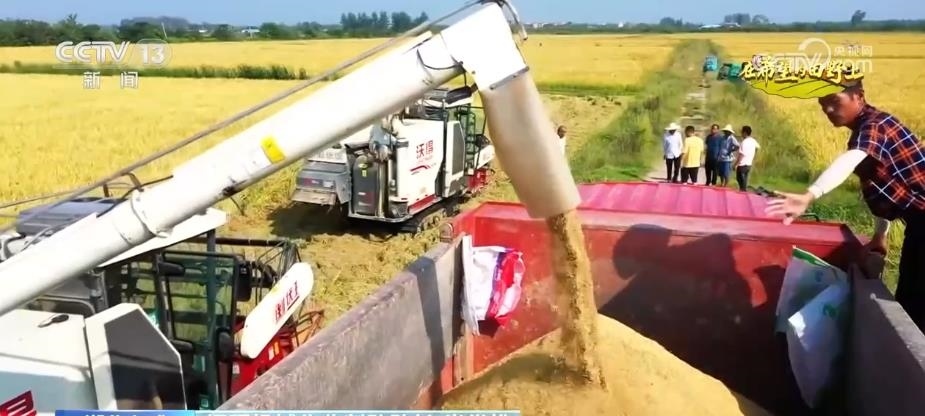 央視網(wǎng)消息:稻花香里說豐年,時下,湖北各地陸續(xù)進入了秋糧收割的關鍵時期。在孝感市孝南區(qū),這里的30萬畝糯稻迎來了豐收,稻田換上了一身亮麗“金裝”。