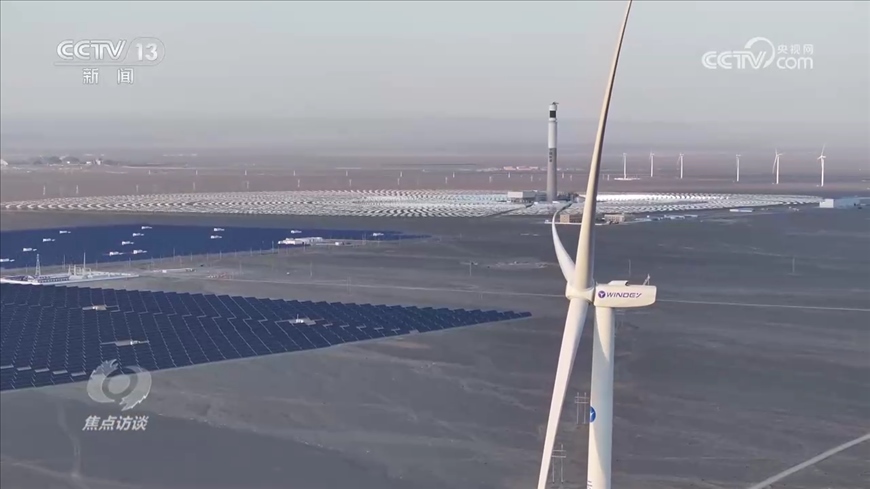 新疆生產(chǎn)建設(shè)兵團第十三師新星市發(fā)改委主任龍剛:“我們新星市光伏和風電的裝機總?cè)萘窟_到了240萬千瓦,2022年風電和光伏總發(fā)電量是38億度電,相當于減排二氧化碳300萬噸左右?!?/p>