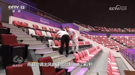 馮晶:“因為乒乓球項目對風速有嚴格要求,我們的空調吹風口在每個座位下方,而且空調出風的速度控制在0.2米/秒,這樣不僅可以控制整個風速,而且整個是分布式控制系統(tǒng),這片區(qū)域如果沒有觀眾,那么這片區(qū)域的空調可以不啟用,可以實現(xiàn)節(jié)能?!?/p>