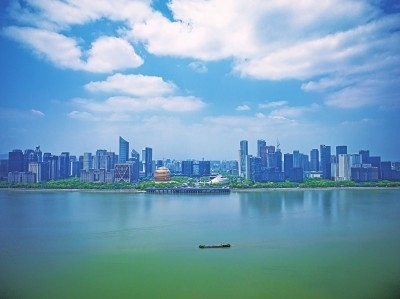 杭州錢(qián)江新城與錢(qián)塘江景色。新華社記者 江漢攝