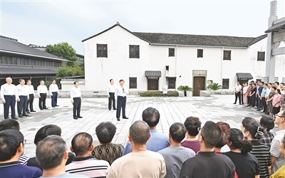隨后,習(xí)近平乘車來到位于紹興的浙東運(yùn)河文化園考察。他步行察看古運(yùn)河河道和周邊歷史文化遺存,詳細(xì)了解浙東運(yùn)河發(fā)展演變史和當(dāng)?shù)睾侠砝盟Y源、推進(jìn)大運(yùn)河保護(hù)等情況。習(xí)近平強(qiáng)調(diào),大運(yùn)河是世界上最長的人工運(yùn)河,是十分寶貴的文化遺產(chǎn)。大運(yùn)河文化是中國優(yōu)秀傳統(tǒng)文化的重要組成部分,要在保護(hù)、傳承、利用上下功夫,讓古老大運(yùn)河煥發(fā)時(shí)代新風(fēng)貌。