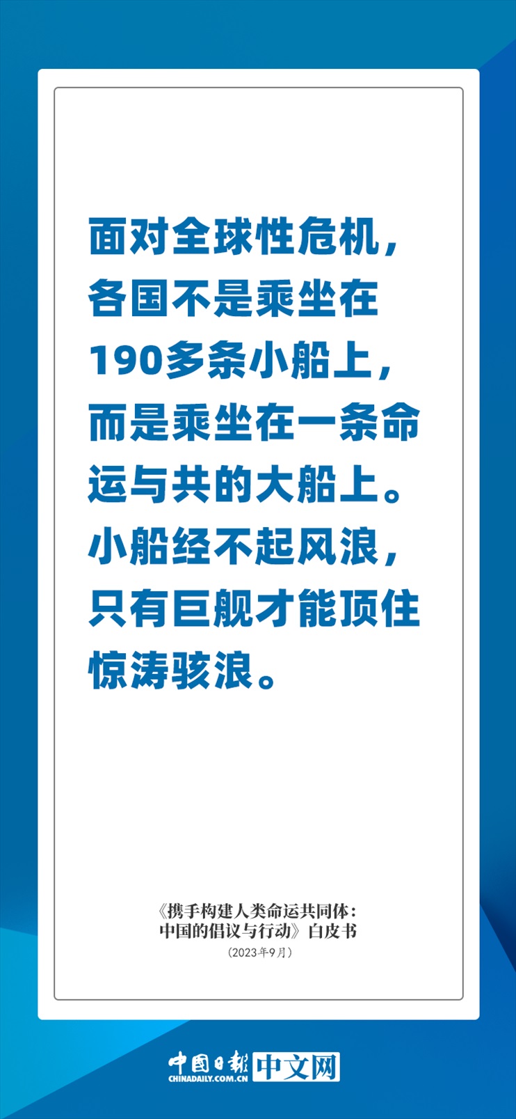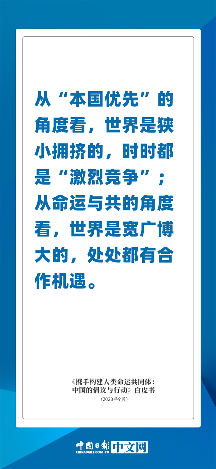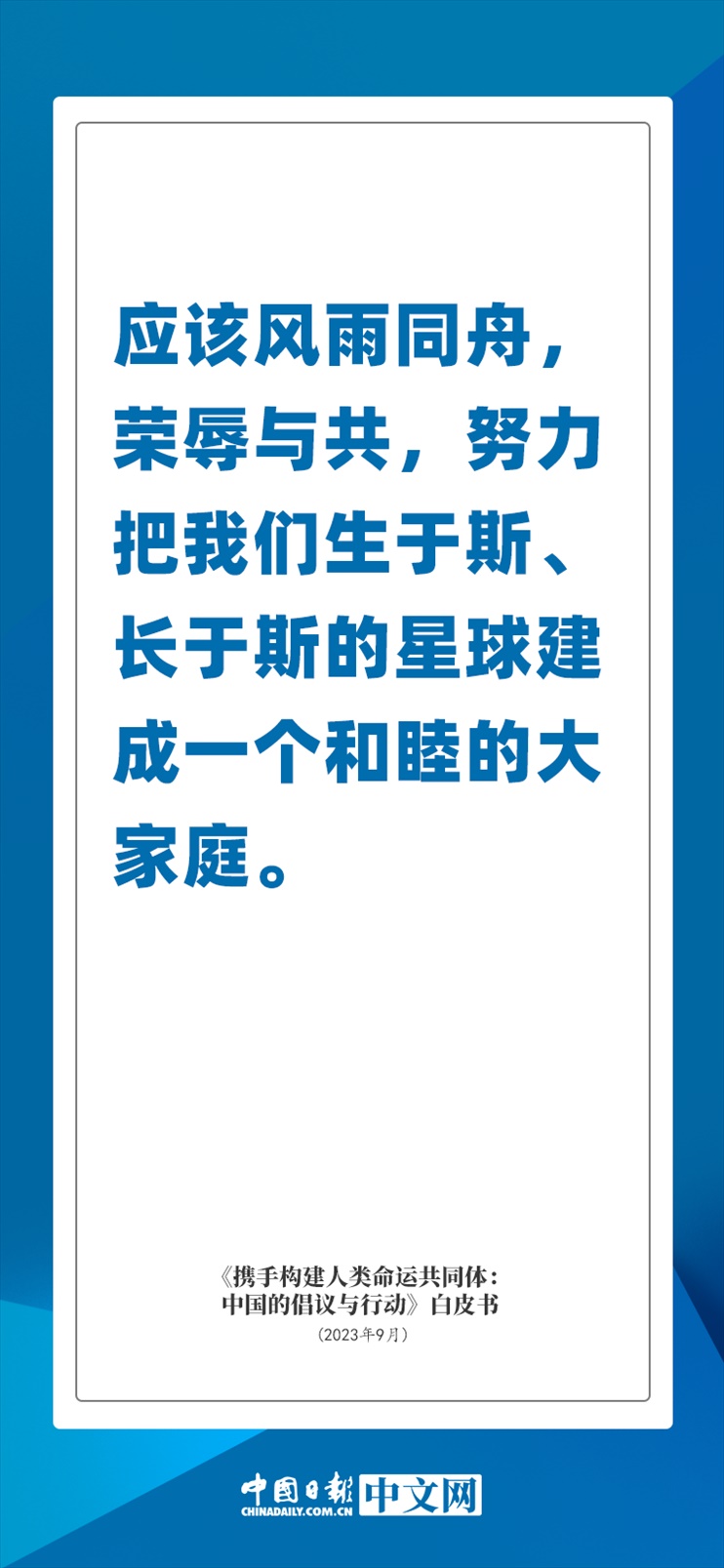 國(guó)務(wù)院新聞辦公室于2023年9月26日發(fā)布《攜手構(gòu)建人類命運(yùn)共同體:中國(guó)的倡議與行動(dòng)》白皮書(shū),發(fā)人深思催人奮進(jìn)。