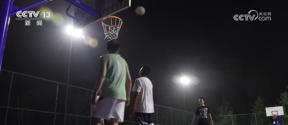 除了足球場(chǎng),村里還有一塊標(biāo)準(zhǔn)的籃球場(chǎng)。如果天氣好的話,這里幾乎每天晚上都有村民來(lái)這兒打球。