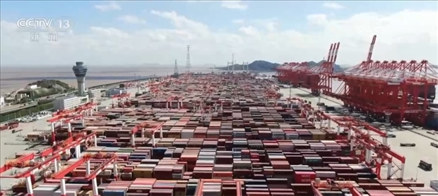 總臺(tái)央視記者 劉柏煊:這樣一個(gè)76立方米的集裝箱就是這場改革的一個(gè)抓手。出口汽車一出廠就被裝進(jìn)這樣的集裝箱,一個(gè)箱可以裝三輛車,在蕪湖港這樣一個(gè)內(nèi)陸港就能辦好“出國”的手續(xù),接著就等待貨船從這里將它們一路沿著長江送到上海洋山港,然后直接出海。