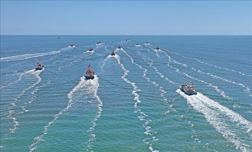 進入九月,北緯35度以北的黃渤海海域結束了為期4個月的伏季休漁期。在大連各漁港碼頭,7800余艘漁船競相揚帆起航,開啟秋汛捕撈季,迎接豐收到來。