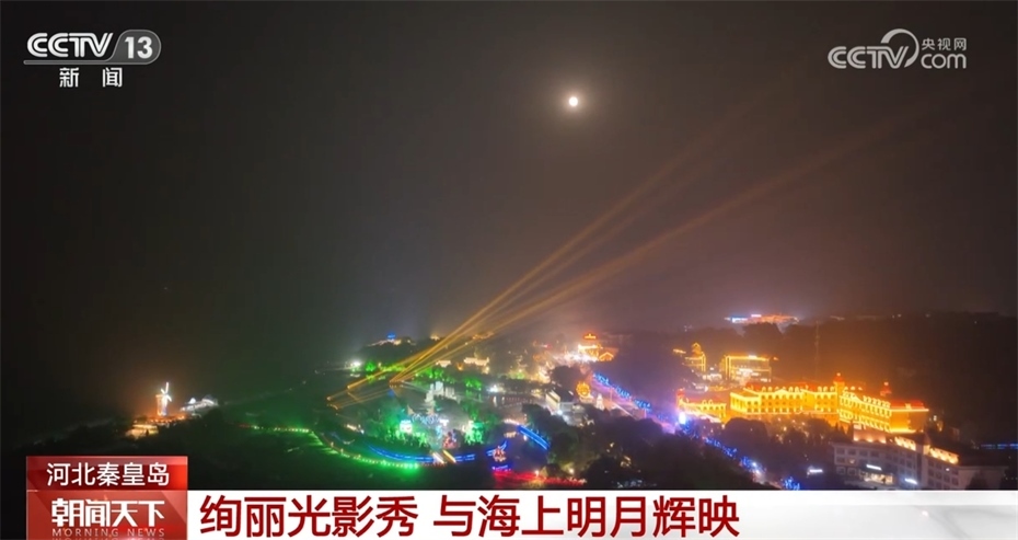 海上生明月,天涯共此時。在9月29日中秋夜,一輪圓月從海上升起,皎潔的月光照在北戴河的海灣之上。為觀賞中秋明月,大批的游客來到了北戴河當(dāng)?shù)刈罴训馁p月地鴿子窩公園。為使中秋夜變得更璀璨,鴿子窩公園打造了以“海上奇幻夜”為主題的光影秀。絢麗的燈光流光溢彩,與中秋明月相輝映,碧海、月色與光影給前來賞月的游客帶來了旅游新體驗。