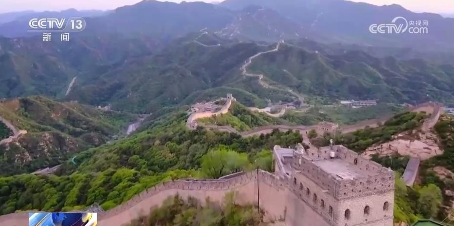 乘坐纜車幾分鐘后,記者就抵達了八達嶺長城的南四樓,長城的壯麗景象盡收眼底。伴隨著夕陽余暉,游客們俯瞰長城隨山巒起伏,很多人在“不到長城非好漢”的標(biāo)記處打卡拍照。