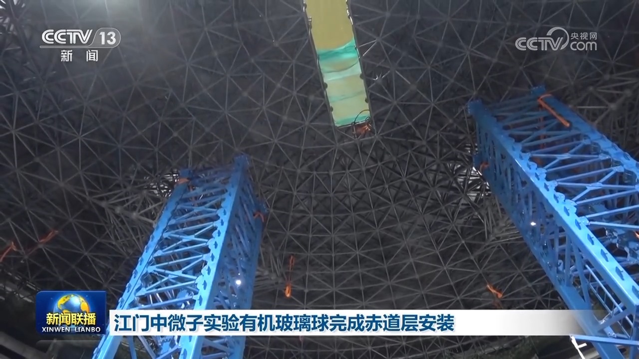 央視網(wǎng)消息(新聞聯(lián)播):大科學(xué)裝置江門中微子實驗正在緊張建設(shè)中,位于地下700米的中心探測器日前完成了世界最大單體有機(jī)玻璃球赤道層的安裝,探測器整體工程過半。