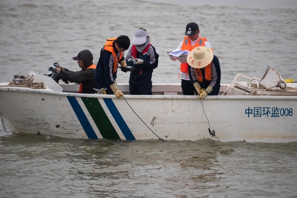 監(jiān)測人員現(xiàn)場測定水生態(tài)環(huán)境參數(shù)(2023年5月13日攝)。新華社記者肖藝九 攝