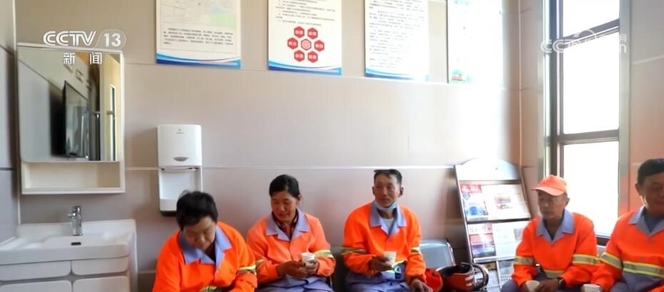 中午12時,東營市的最高氣溫升至38℃左右。在蒙山路一處專門為環(huán)衛(wèi)工人“量身打造”的休息室,環(huán)衛(wèi)工人們可以隨時到這里避暑納涼,休息室里有空調(diào)、冰箱、飲水機等各種設(shè)施。