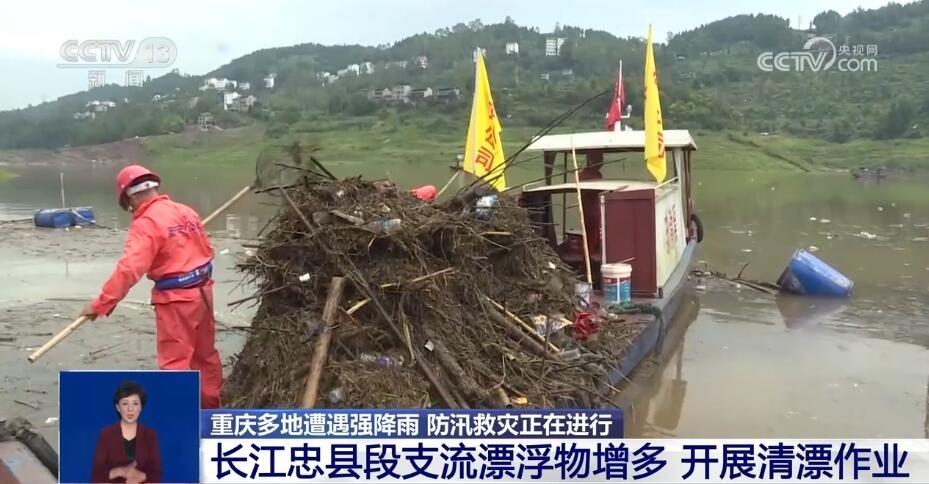 近段時間,重慶的強降雨天氣還導(dǎo)致長江重慶忠縣段各支流漂浮物增多。目前,多艘清漂船來回穿梭在江面上,分區(qū)域開展清漂作業(yè),清漂工人將江面漂浮物一一打撈上船,轉(zhuǎn)運上岸后再進行集中處理。7月3日以來,忠縣累計出動人工打撈船次80余船次,累計打撈垃圾約400余噸。此外,此輪長江洪峰過境忠縣后,長江忠縣段水位迎來上漲,當(dāng)?shù)叵嚓P(guān)部門正密切關(guān)注水位變化。