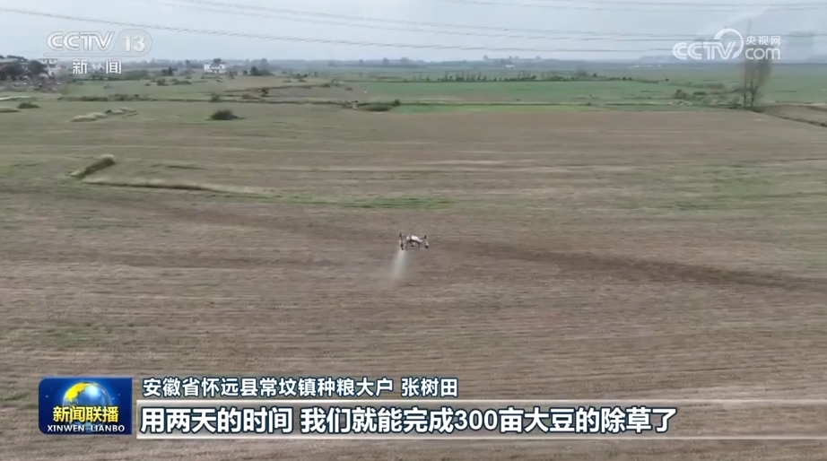 今年,皖北大豆主產(chǎn)區(qū)持續(xù)推進(jìn)單產(chǎn)提升行動(dòng)。在安徽懷遠(yuǎn)縣種糧大戶張樹田的300畝大豆田里,無(wú)人機(jī)、植保機(jī)正在除草。由于夏播時(shí)全部采用大豆根瘤菌拌種,豆苗出得更齊、更壯。