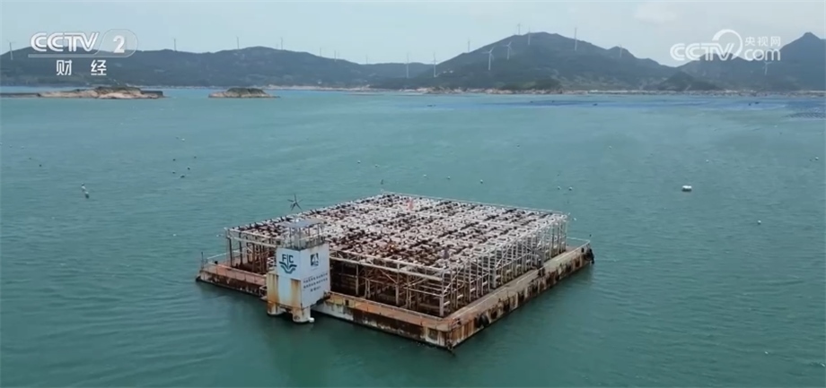 在這片海域的更深遠處,這座總面積1200平方米的“鋼鐵小島”就是目前全國最大的深遠海鮑魚養(yǎng)殖平臺“福鮑1號”。
