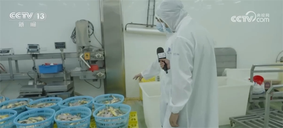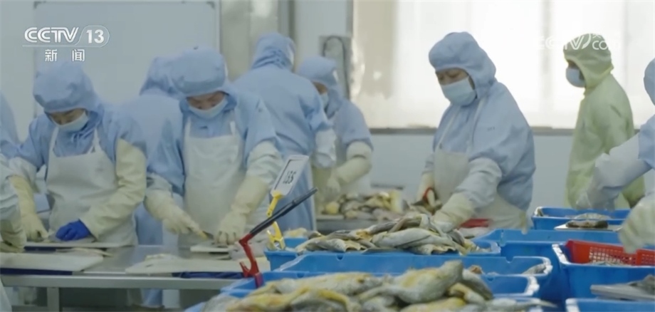 總臺(tái)央視記者 馬寧:我現(xiàn)在來(lái)到了寧德市當(dāng)?shù)匾患冶容^大的黃魚生產(chǎn)企業(yè),大家可以看到我身后就是工人們正在把已經(jīng)腌制好的黃魚經(jīng)過(guò)分撿、稱重、打包、送進(jìn)冷庫(kù),這些經(jīng)過(guò)處理的大黃魚就可以通過(guò)冷鏈物流送到千家萬(wàn)戶的餐桌上。
