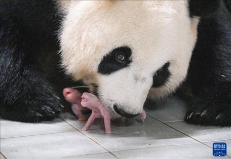 據(jù)韓國(guó)京畿道龍仁市愛寶樂園介紹,旅韓大熊貓“愛寶(華妮)”于7月7日清晨順利產(chǎn)下一對(duì)雌性雙胞胎幼崽。這是旅韓大熊貓“愛寶(華妮)”和“樂寶(園欣)”繼2020年誕下“福寶”后在韓國(guó)再次自然交配并誕下幼崽。