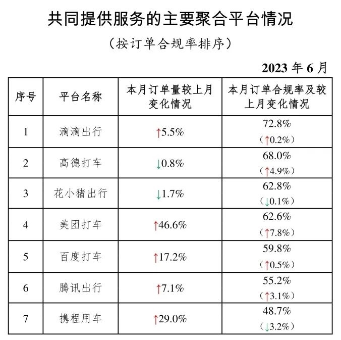 其中,面向乘客、與網(wǎng)約車(chē)平臺(tái)公司共同提供服務(wù)的平臺(tái)(俗稱“聚合平臺(tái)”)完成2.18億單,環(huán)比上升4.0%。按訂單合規(guī)率由高到低的分別是滴滴出行、高德打車(chē)、花小豬出行、美團(tuán)打車(chē)、百度打車(chē)、騰訊出行、攜程用車(chē)。
