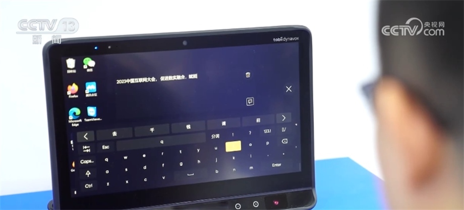 這位技術(shù)人員正在演示“眼動輸入法”,通過眼球轉(zhuǎn)動和凝視來操作電腦完成輸入。這種眼球追蹤技術(shù)通過眼控儀上配備的多組近紅外光源,借助精密算法得到目光注視點(diǎn)坐標(biāo)位置,從而讓電腦知道眼睛在看哪里,實現(xiàn)用目光操作電腦,取代傳統(tǒng)的鍵盤鼠標(biāo)。