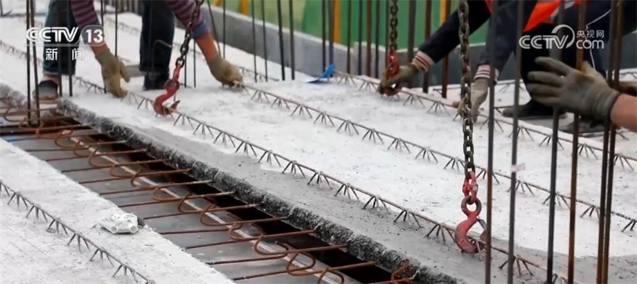 總臺(tái)央視記者 鄭怡哲:小時(shí)候很多人都玩過搭積木蓋房子的游戲,用標(biāo)準(zhǔn)化的零件就可以拼裝出一個(gè)完整的建筑結(jié)構(gòu)。而現(xiàn)在裝配式建筑的理念也越來越多地在樓房施工中得到應(yīng)用,我面前的樓梯就是一個(gè)提前在工廠里做好的預(yù)制件,按照以往的工藝,這樣的樓梯一層就需要一周左右的時(shí)間,現(xiàn)在一個(gè)小時(shí)以內(nèi)就可以完成安裝,而且可以立刻投入使用,讓施工的效率更上一層樓。
