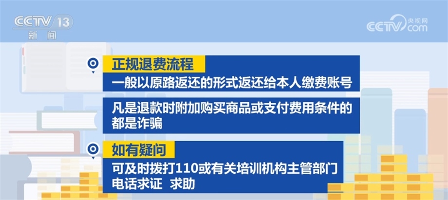 正規(guī)退費(fèi)流程一般以原路返還的形式返還給本人繳費(fèi)賬號(hào),凡是退款時(shí)附加購(gòu)買(mǎi)商品或支付費(fèi)用條件的都是詐騙。如有疑問(wèn),可及時(shí)撥打110或有關(guān)培訓(xùn)機(jī)構(gòu)主管部門(mén)電話求證、求助。