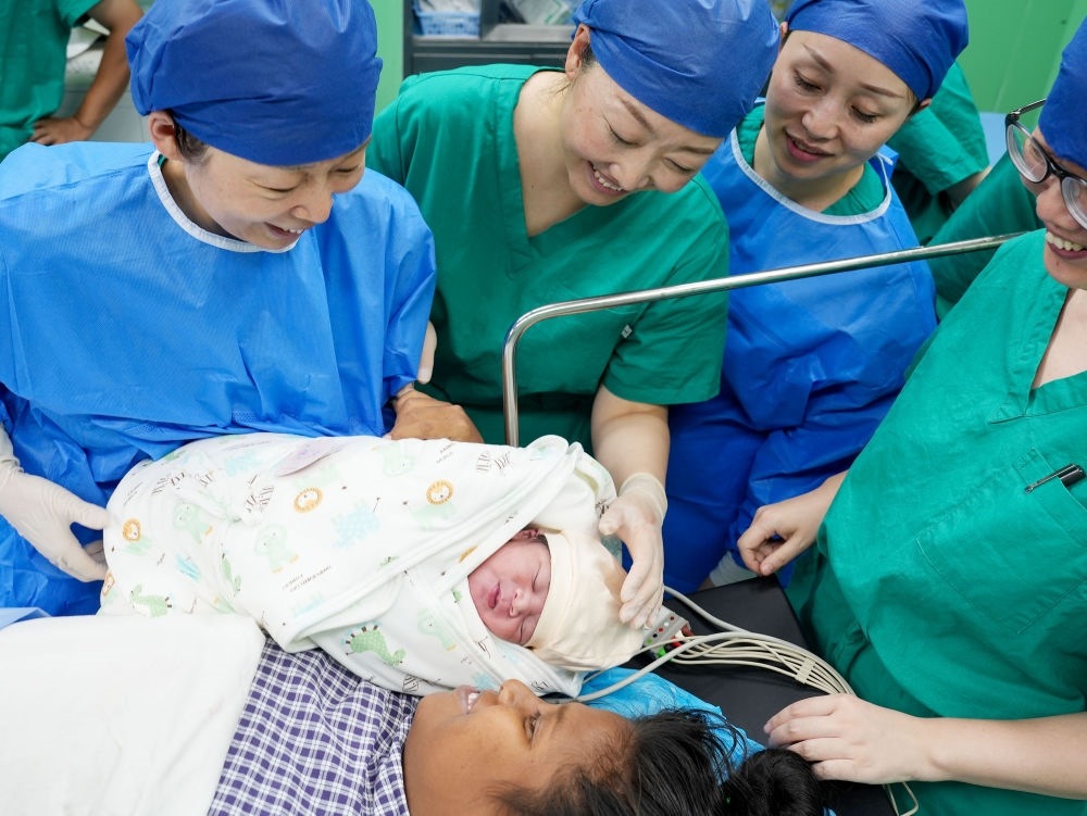 中國(guó)海軍“和平方舟”號(hào)醫(yī)院船在基里巴斯為29歲的塔拉瓦居民德阿瑞接生了一名“和平寶寶”(2023年7月16日攝)。新華社發(fā)(劉偉 攝)