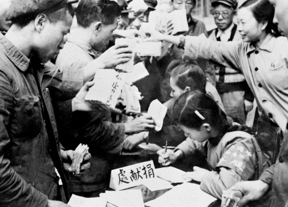 ——知識(shí)分子為支援前線的愛國(guó)事業(yè)鼓與呼,醫(yī)務(wù)工作者組織大批醫(yī)療隊(duì)奔赴前線,“為最可愛的人購(gòu)買飛機(jī)大炮”的捐款熱潮席卷了每一個(gè)社會(huì)層面、每一個(gè)社會(huì)角落……