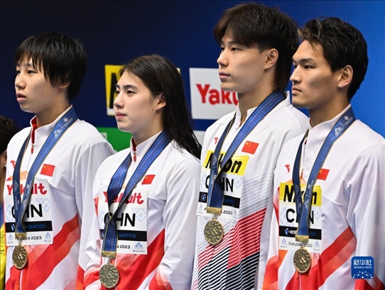 ·中國隊(duì)首次獲得男女4x100米混合泳接力世錦賽冠軍。