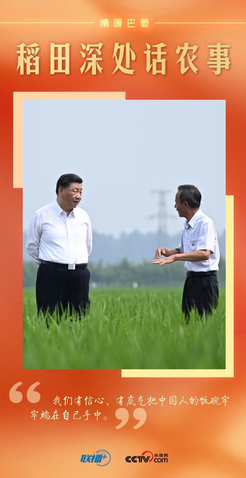 遠(yuǎn)眺廣袤田野,總書(shū)記思慮深遠(yuǎn):“民以食為天。推進(jìn)農(nóng)業(yè)現(xiàn)代化,既要靠我們中國(guó)的農(nóng)業(yè)專(zhuān)家,也要靠我們中國(guó)的農(nóng)民,我們有信心、有底氣實(shí)現(xiàn)糧食安全的目標(biāo)。四川要把農(nóng)業(yè)搞好,把糧食生產(chǎn)抓好?!?/p>