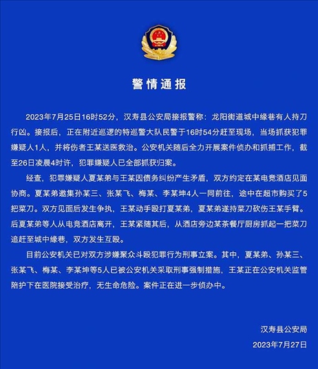 ·湖南漢壽警方通報(bào)“多人當(dāng)街持刀互砍”:債務(wù)問題引發(fā),已刑事立案。