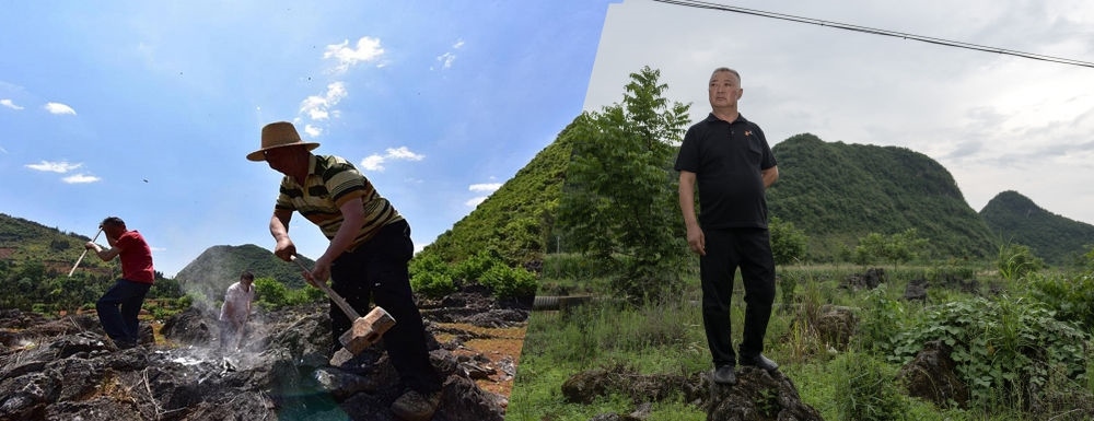就在劉文政和伙伴們在山肚子里奮力掘進的時候,20多歲的木者村村支書劉登榮,也放響了改造石漠化土地的“第一炮”。