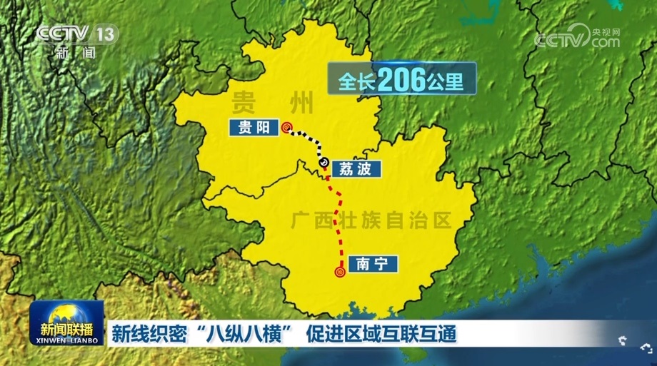 貴南高鐵連接貴陽和南寧,是“八縱八橫”高鐵網(wǎng)包頭至??谕ǖ赖闹匾M成部分。正線全長482公里,是黔桂兩地首條設(shè)計(jì)時(shí)速達(dá)350公里的高速鐵路。此次開通的貴陽至荔波段,全長206公里,貴陽至荔波最快只需57分鐘。