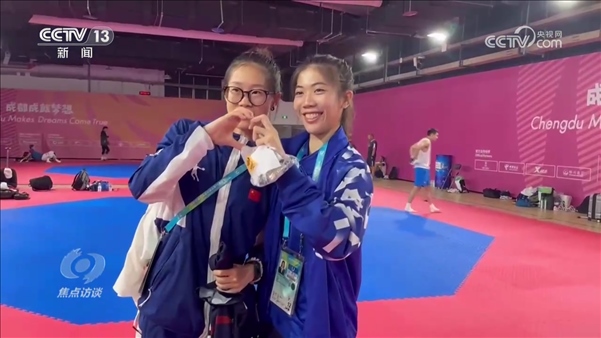 成都大運(yùn)會,是青春的盛會,也是一次友誼的盛會。來自世界各國的大學(xué)生們,一起競技,一起生活。他們交流著彼此的運(yùn)動技巧,同時也交流著彼此的文化和觀點。正在中國地質(zhì)大學(xué)就讀的跆拳道運(yùn)動員羅妙溢,在成都大運(yùn)會中遇到了自己的偶像——東京奧運(yùn)會跆拳道女子49公斤級冠軍、泰國選手班妮巴。在自己不比賽的時候,羅妙溢會專門來給班妮巴加油。