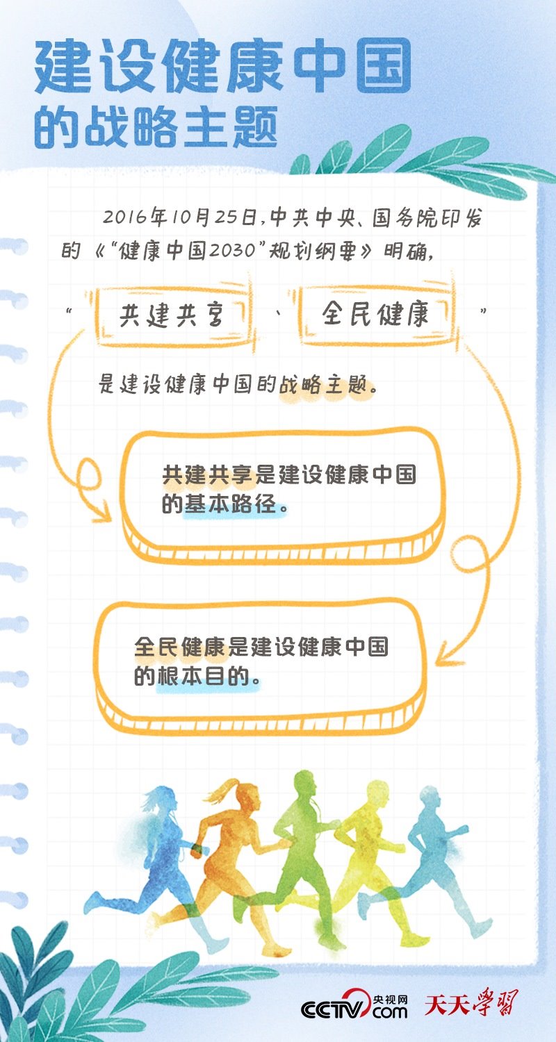 黨的二十大報告將“建成健康中國”作為到2035年我國發(fā)展的總體目標(biāo)之一,并指出,人民健康是民族昌盛和國家強盛的重要標(biāo)志,把保障人民健康放在優(yōu)先發(fā)展的戰(zhàn)略位置,完善人民健康促進政策。什么是健康中國?如何全面推進健康中國建設(shè)?央視網(wǎng)《天天學(xué)習(xí)·學(xué)習(xí)筆記》特梳理相關(guān)內(nèi)容,為您解讀總書記治國理政關(guān)鍵詞——健康中國。