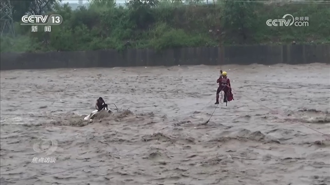 趙亞朋:“大吊車把我吊起來以后,我向下看距離地面有將近50米的高度,看著地面和洪水翻滾的樣子,心里當時挺害怕的。因為整個身體在一根繩子上,身體沒有重心,身體不受控制,沒有發(fā)力點。”