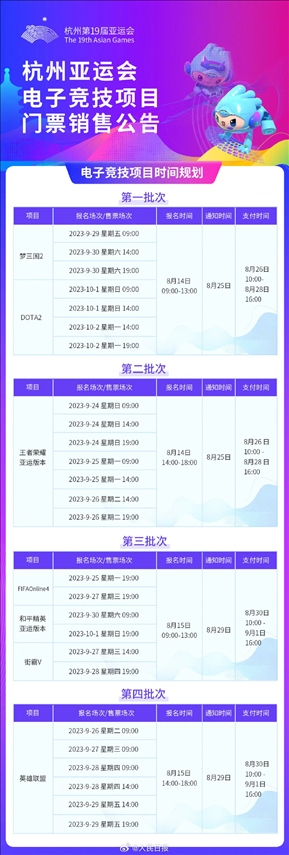 ·杭州亞運(yùn)會電子競技項(xiàng)目門票14日啟動銷售。