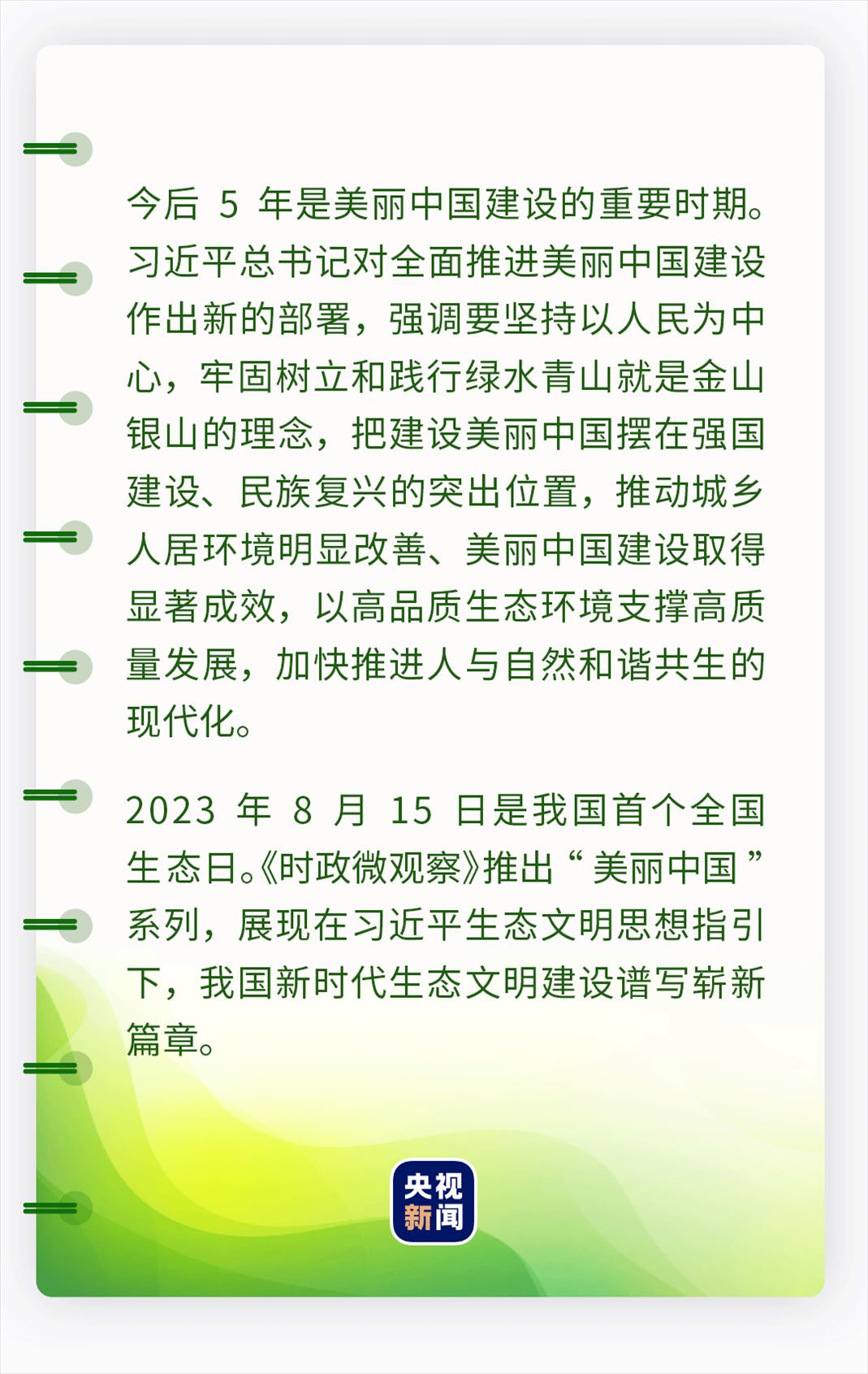 在習近平生態(tài)文明思想指引下,我們守牢美麗中國建設(shè)安全底線,健全美麗中國建設(shè)保障體系,在神州大地上全面推進美麗中國建設(shè),不斷繪出人與自然和諧共生的美好畫卷。