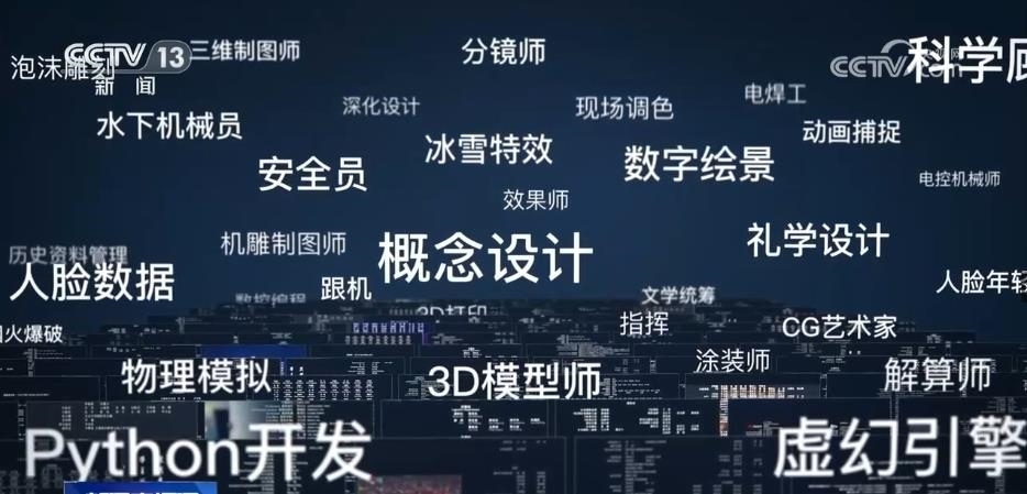從30多萬字的文本中,AI算法識別出了300多個電影產業(yè)工種,一條隱藏在幕后的國產電影產業(yè)鏈在眼前展開。這是一個電影產業(yè)鏈越分越細、工種越增越多的過程。20多個新的工種在這10年間誕生,動作捕捉、虛擬拍攝、數控編程、3D打印等,其中,七成以上的新增工種跟數字化技術的進步有關。
