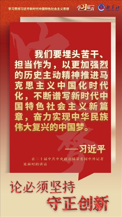 我們從事的是前無古人的偉大事業(yè),守正才能不迷失方向、不犯顛覆性錯誤,創(chuàng)新才能把握時代、引領(lǐng)時代。我們要以科學的態(tài)度對待科學、以真理的精神追求真理,堅持馬克思主義基本原理不動搖,堅持黨的全面領(lǐng)導不動搖,堅持中國特色社會主義不動搖,緊跟時代步伐,順應實踐發(fā)展,以滿腔熱忱對待一切新生事物,不斷拓展認識的廣度和深度,敢于說前人沒有說過的新話,敢于干前人沒有干過的事情,以新的理論指導新的實踐。