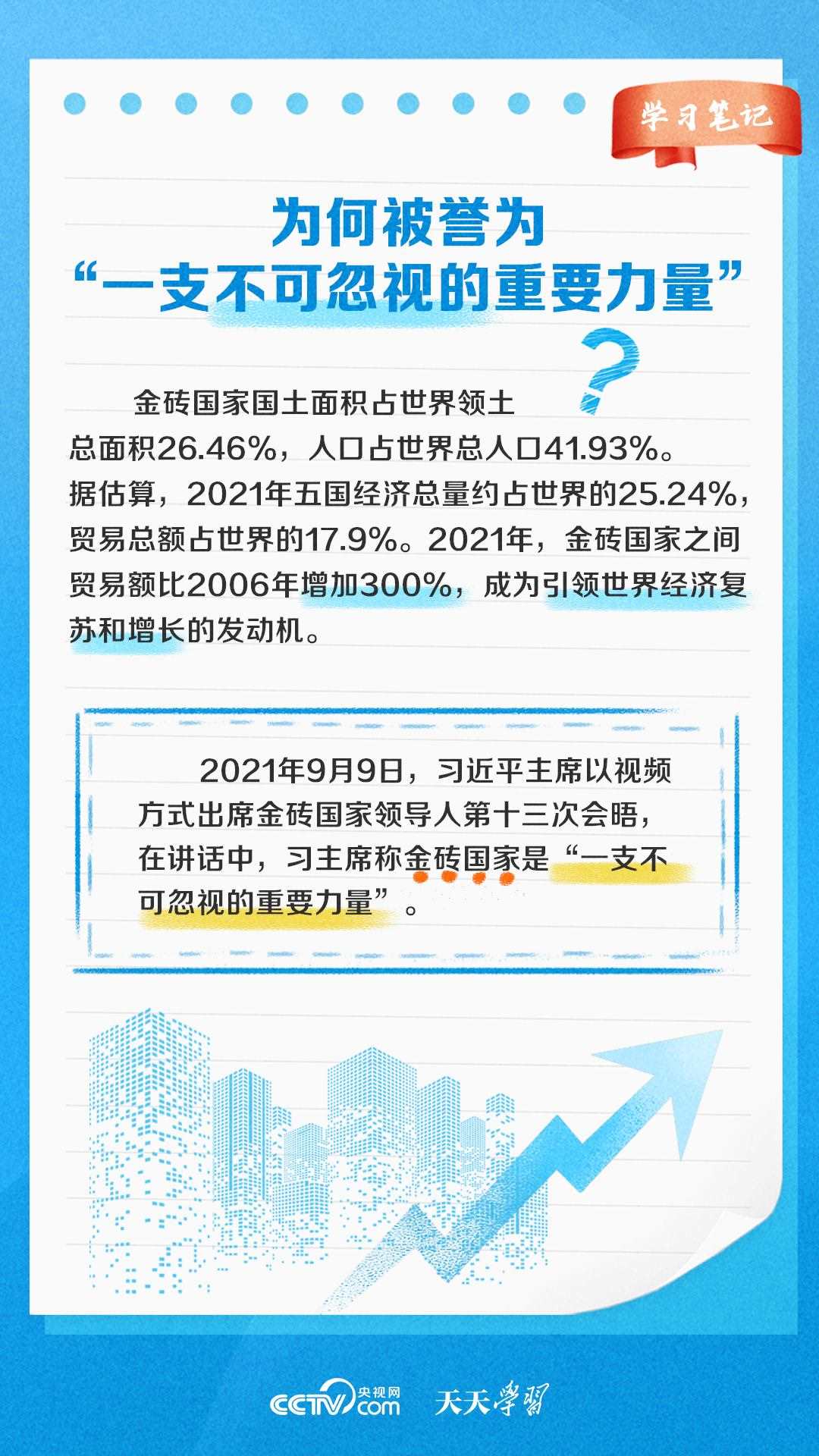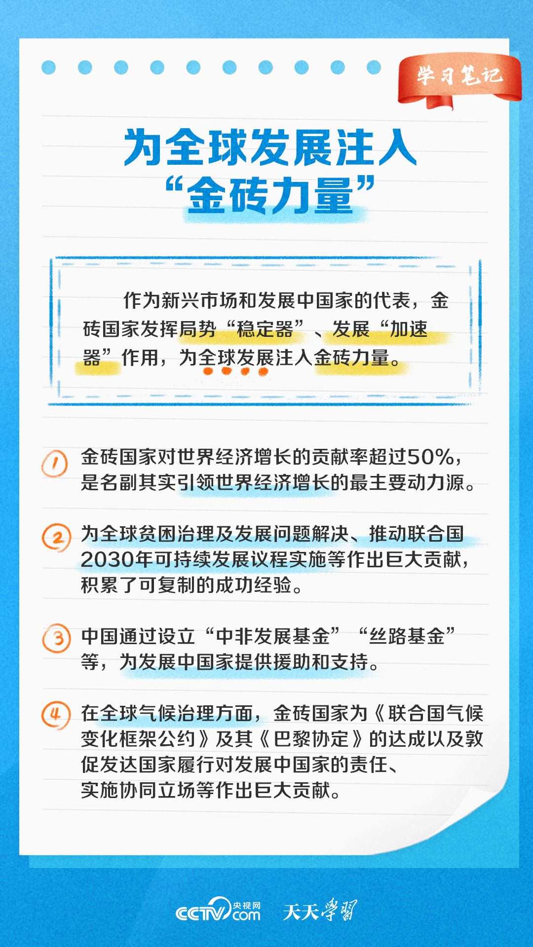 自金磚國(guó)家合作機(jī)制建立以來(lái),金磚國(guó)家合作不斷走深走實(shí),成為帶動(dòng)世界經(jīng)濟(jì)增長(zhǎng)、完善全球經(jīng)濟(jì)治理、推動(dòng)國(guó)際關(guān)系民主化的重要力量之一。《天天學(xué)習(xí)》特推出《學(xué)習(xí)筆記》,與您一起了解金磚國(guó)家合作機(jī)制緣何擁有強(qiáng)勁生命力。