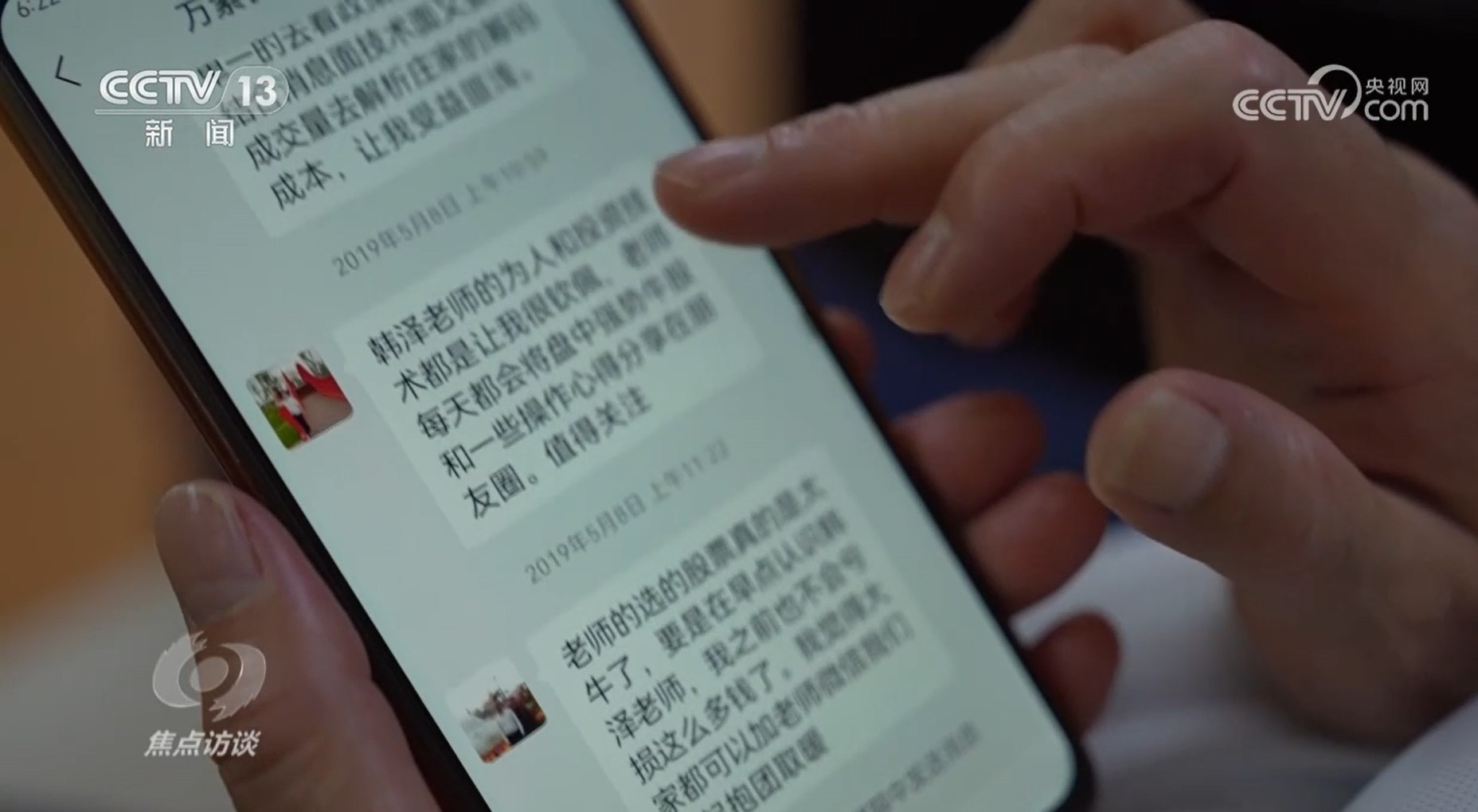 在這個群里,李女士認識了一個叫“韓澤”的老師,平時在群里分享股市消息,晚上還會開直播課,說什么股能賺錢,指導大家,有的確實也賺了錢。