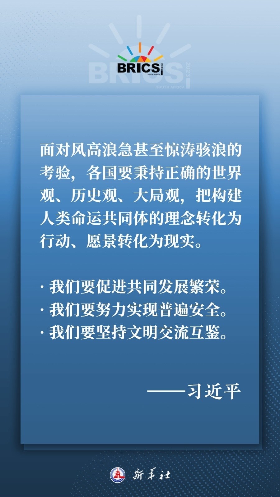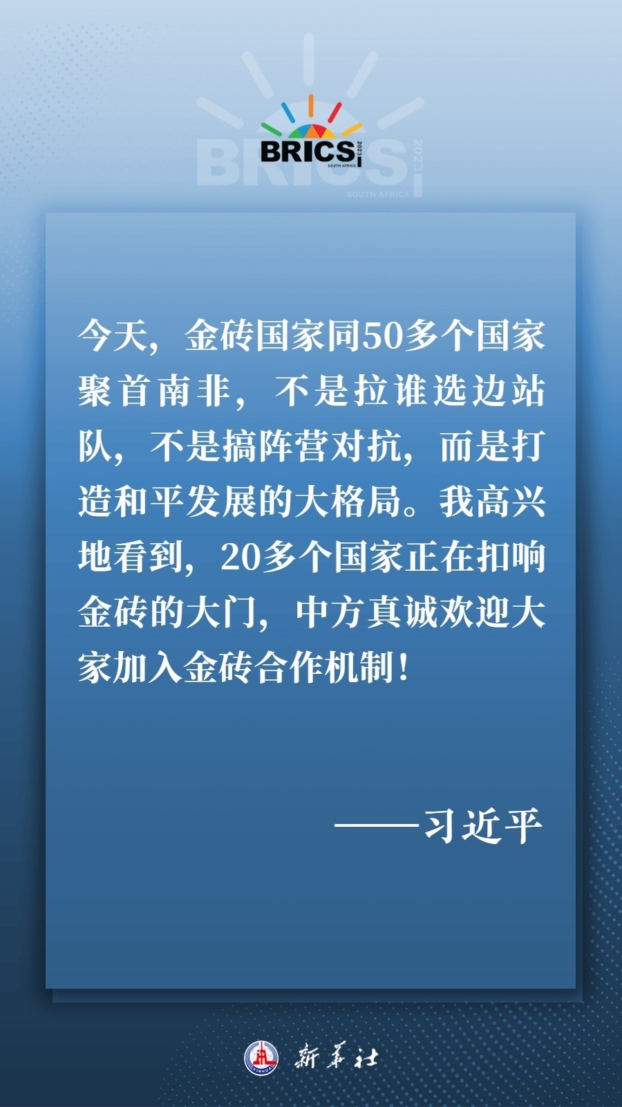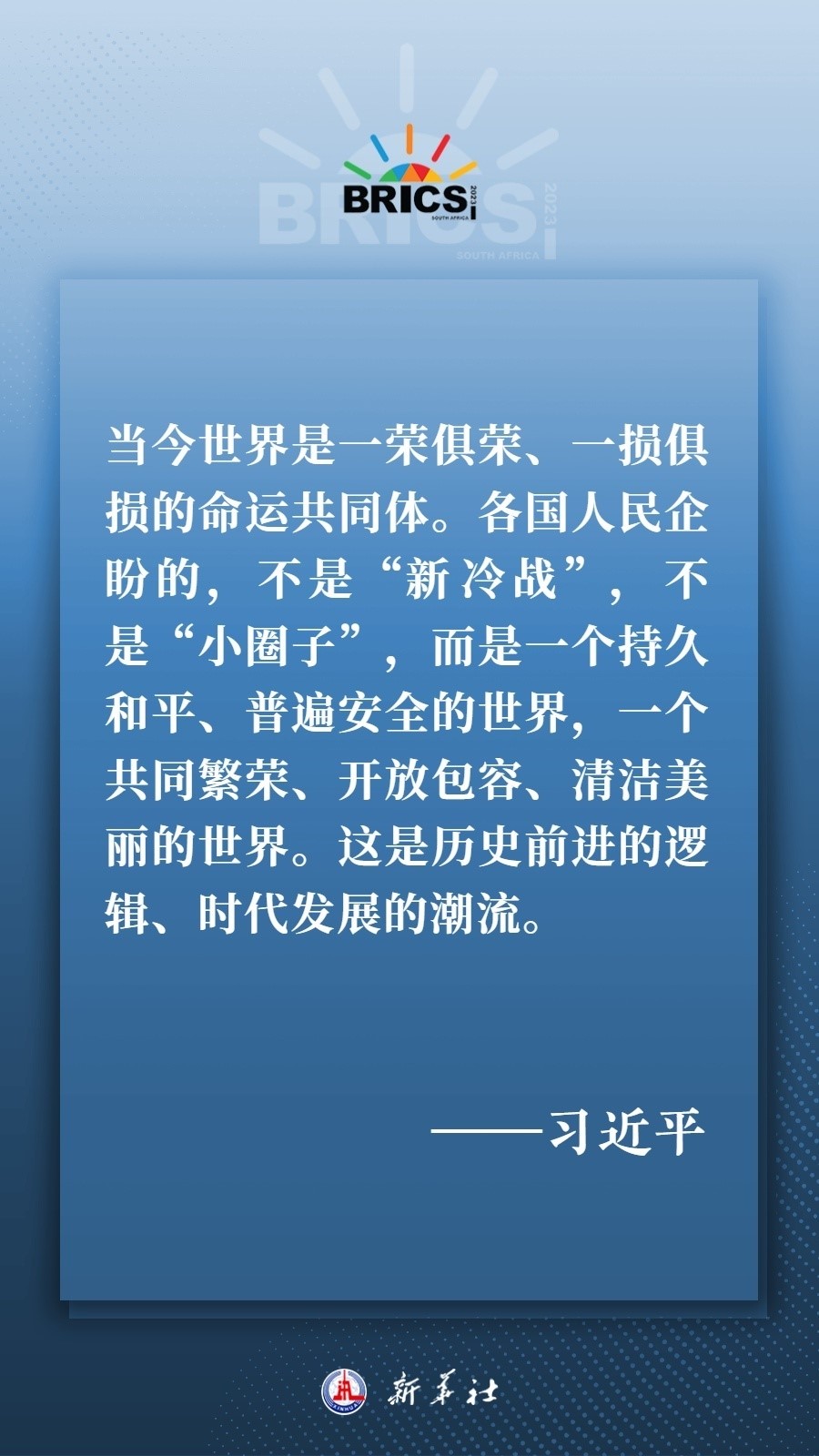 當?shù)貢r間8月22日下午,國家主席習近平向約翰內(nèi)斯堡金磚國家工商論壇閉幕式發(fā)表致辭,為各國深化團結合作、應對風險挑戰(zhàn)、共建更加美好的世界指明方向——