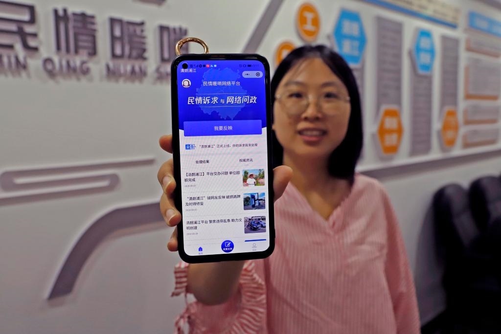 浦江市民通過“民情暖哨”網(wǎng)絡(luò)平臺(tái)反映訴求并進(jìn)行平臺(tái)首頁(yè)展示。(方黎晨 攝)