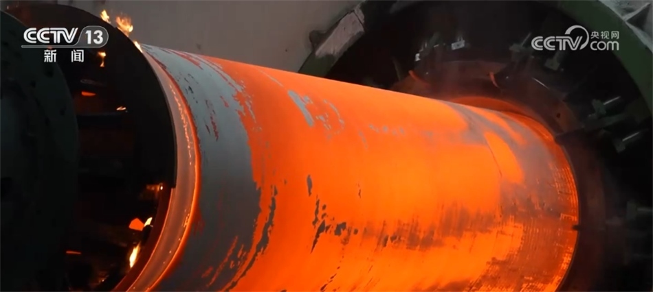總臺央視記者 古峻嶺:經(jīng)過1300多℃的高溫澆鑄成型,全球最大口徑的球墨鑄鐵管正式投產(chǎn)下線。此刻我距離它十幾米遠(yuǎn),就已經(jīng)感覺到滾滾的熱浪襲來。
