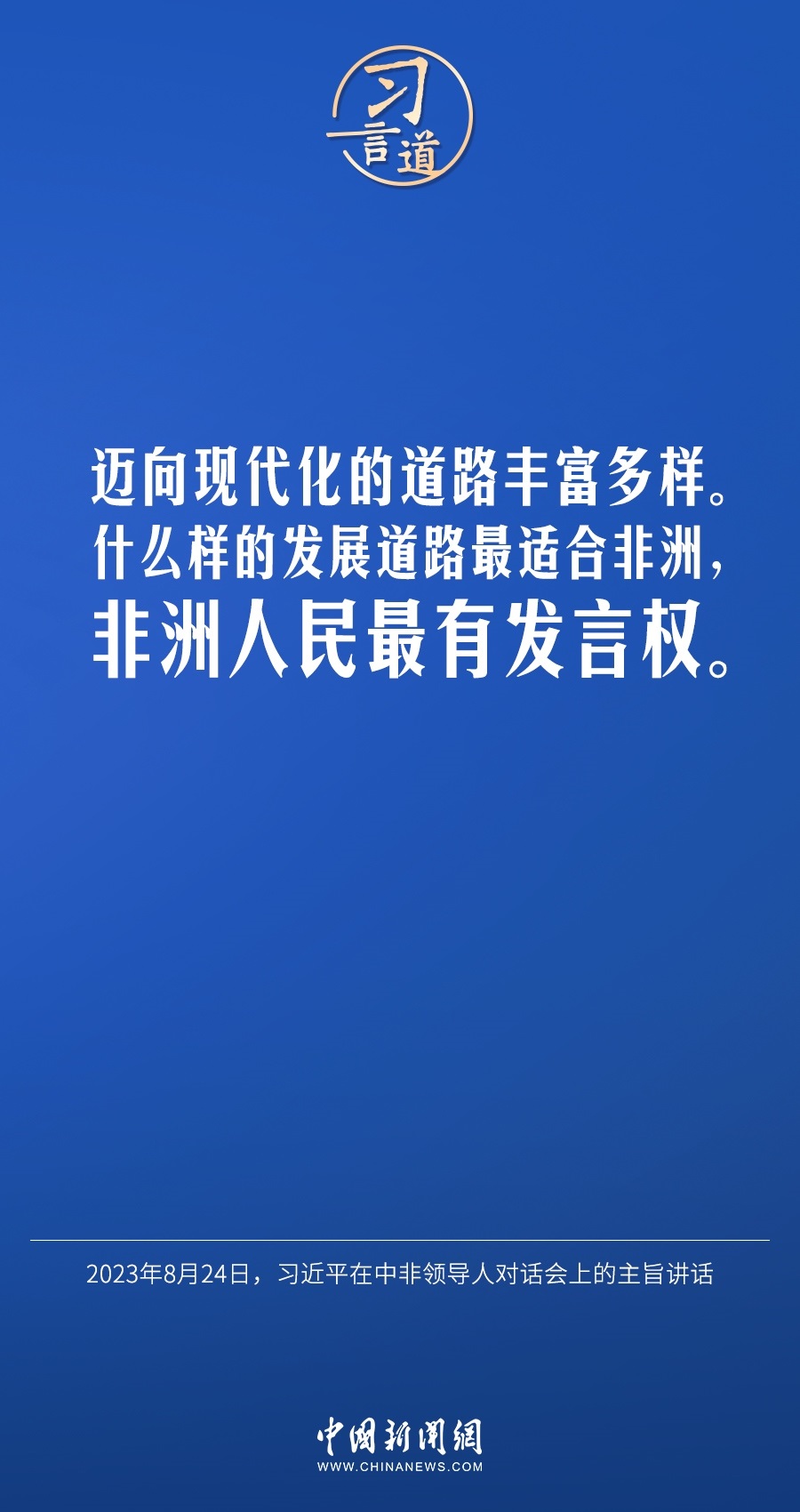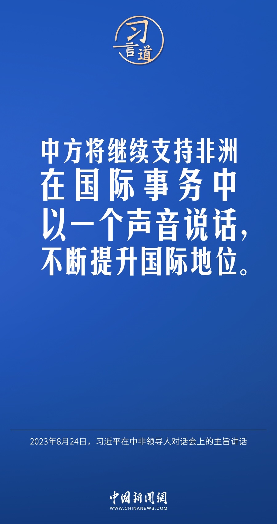 當(dāng)?shù)貢r(shí)間8月24日晚,國家主席習(xí)近平和南非總統(tǒng)拉馬福薩在約翰內(nèi)斯堡共同主持中非領(lǐng)導(dǎo)人對(duì)話會(huì)。習(xí)近平發(fā)表題為《攜手推進(jìn)現(xiàn)代化事業(yè) 共創(chuàng)中非美好未來》的主旨講話。習(xí)近平指出——