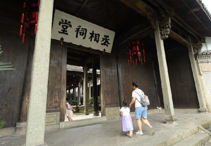 游客在諸葛村丞相祠堂參觀游覽(2023年8月1日攝)。新華社記者 翁忻旸 攝