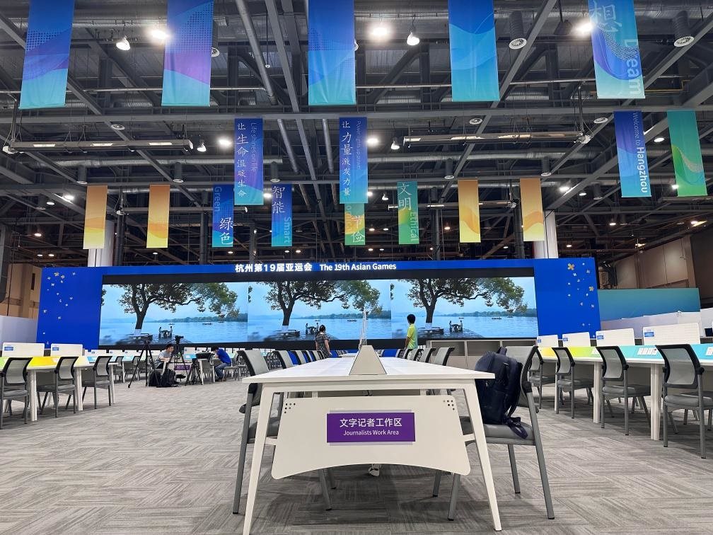 杭州亞運(yùn)會(huì)主新聞中心的媒體公共工作間已布置完畢。新華社記者吳帥帥 攝