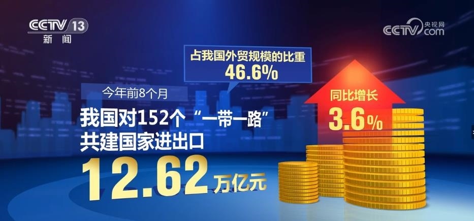 海關統(tǒng)計顯示,2023年前8個月,我國對152個“一帶一路”共建國家進出口12.62萬億元,同比增長3.6%,占我國外貿規(guī)模的比重為46.6%。其中,對東盟進出口4.11萬億元,增長1.6%,對中亞五國進出口3904.7億元,增長34.1%。