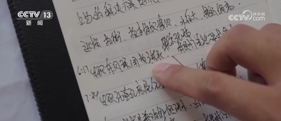 村民撤離后,面對(duì)這段隨時(shí)可能發(fā)生危險(xiǎn)的土堤,張義超和其他4名留守人員分成兩組24小時(shí)巡堤。從張義超的工作筆記中可以清晰地感受到8月6日早晨水情的危急:“6:17,東風(fēng)渠閘板滲水”,“7:34,村民房屋后堤壩滲水”,“7:46,養(yǎng)雞場(chǎng)附近滲水”……不斷出現(xiàn)的滲水點(diǎn)讓26歲的張義超慌了神。