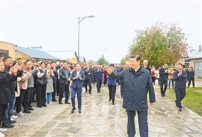 9月6日至8日,中共中央總書記、國家主席、中央軍委主席習(xí)近平在黑龍江考察。這是6日下午,習(xí)近平在大興安嶺地區(qū)漠河市北極村考察時(shí),向當(dāng)?shù)厝罕姄]手致意。新華社記者 鞠 鵬攝